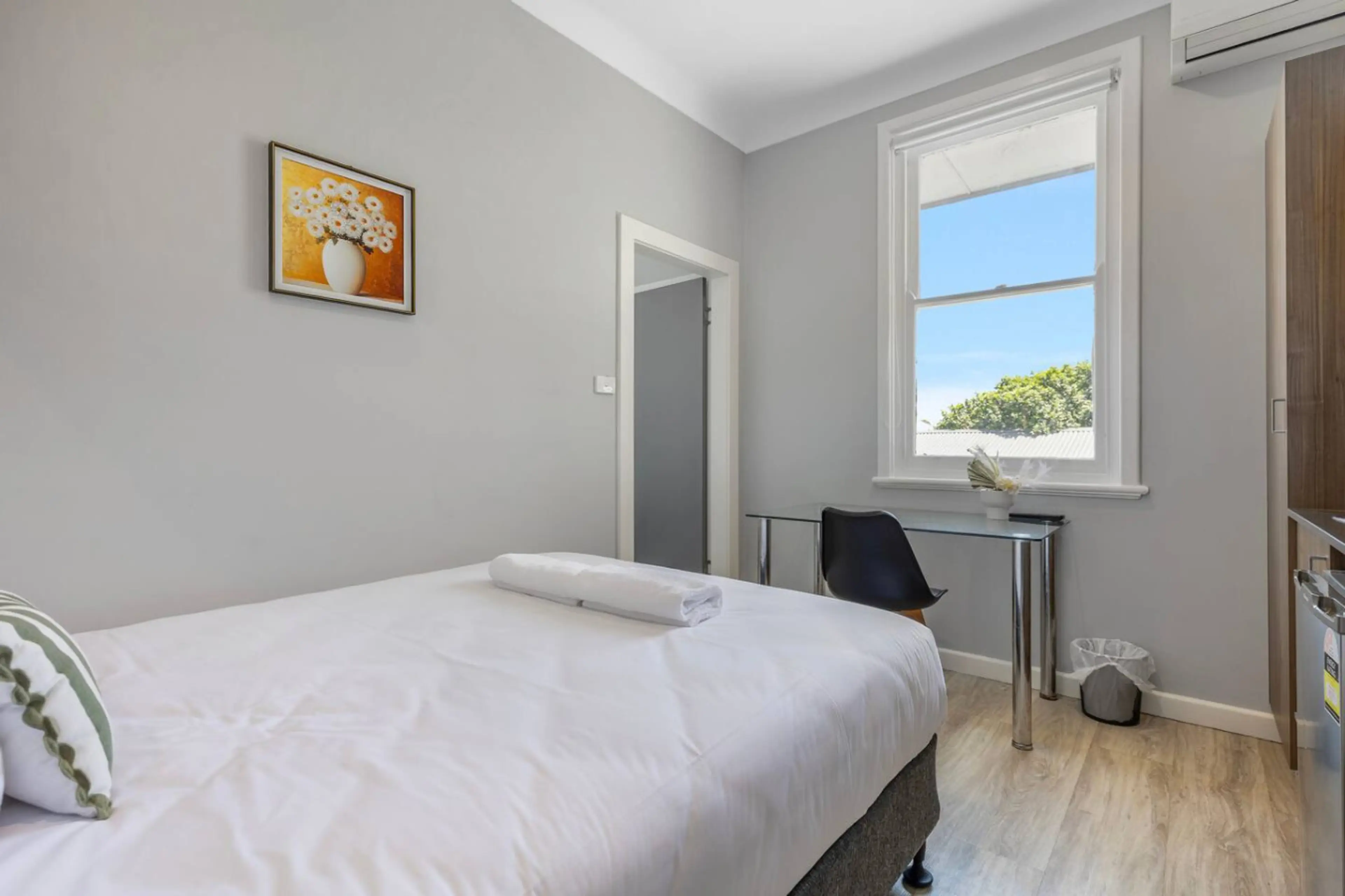 A modern queen studio designed for a comfortable and fuss-free stay. Featuring a plush queen bed and a private ensuite bathroom, this room is perfect for travelers who value convenience and privacy. After a long day, head downstairs to enjoy a meal, a drink, or simply soak in the relaxed pub atmosp...